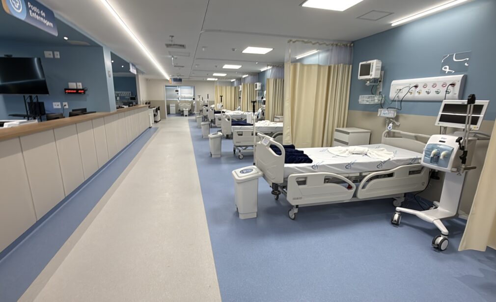 Para reforçar a assistência, em cada andar há dois postos de enfermagem, garantindo atenção redobrada e monitoramento contínuo, priorizando sempre o conforto e bem-estar dos pacientes.
